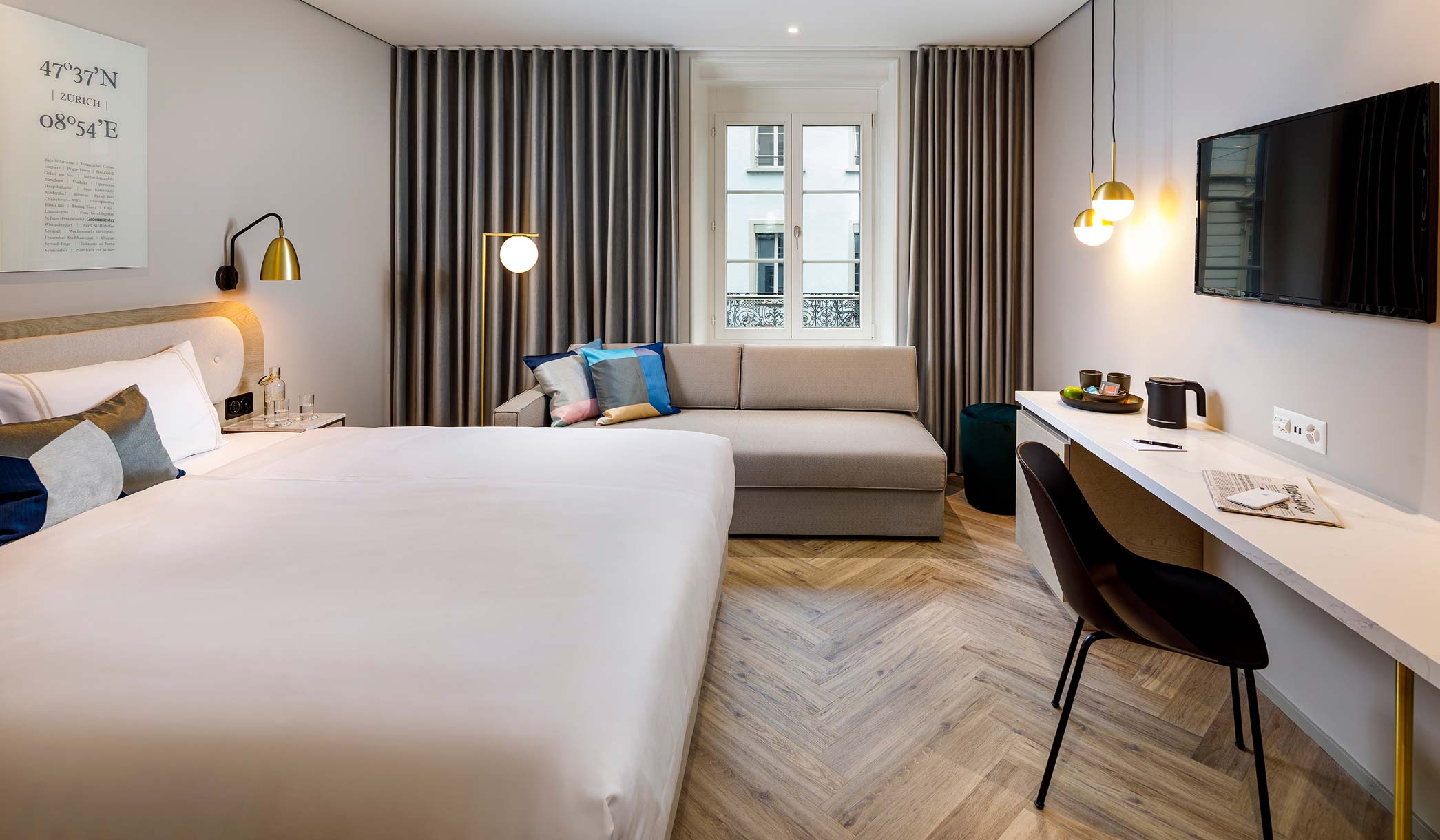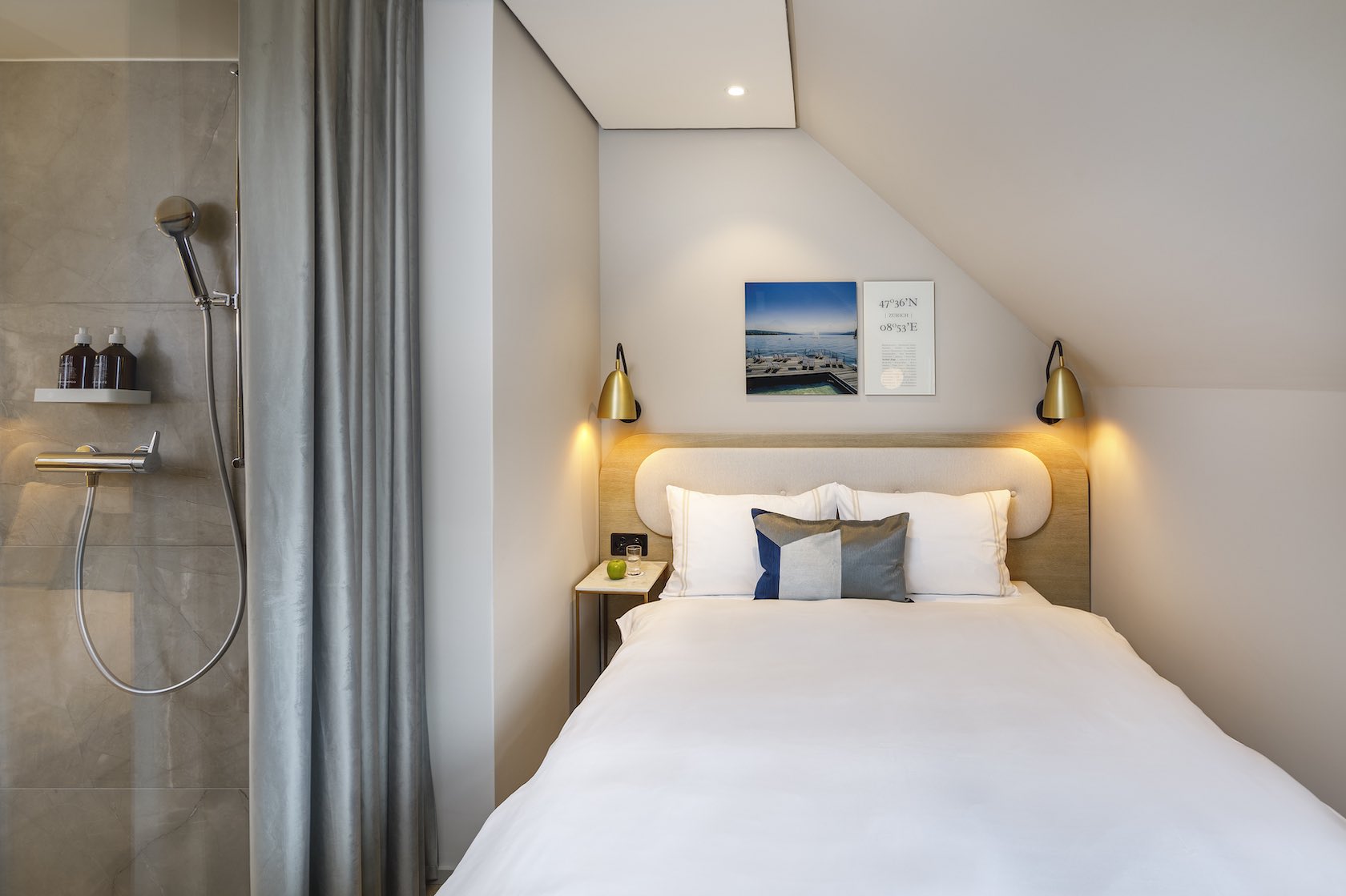 Freuen Sie sich auf ein gemütliches 120 cm Bett, eine offene Regendusche, eine praktische Garderobe mit Stauraum, Minibar, einen laptopsicheren 15-Zoll-Safe sowie einen Wasserkocher mit feiner Teeauswahl.